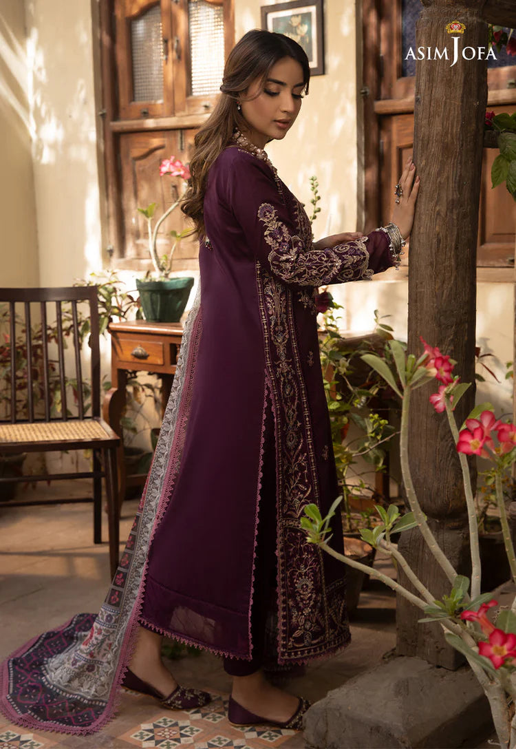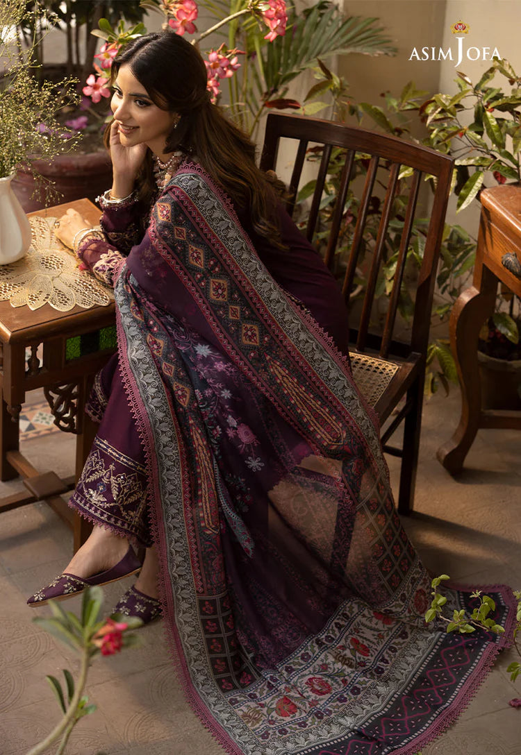 ASIM JOFA-3PC DHANAK EMBROIDRED SHIRT WITH COURTRAI PRINTED SHAWL AND TROUSER-GM-4252