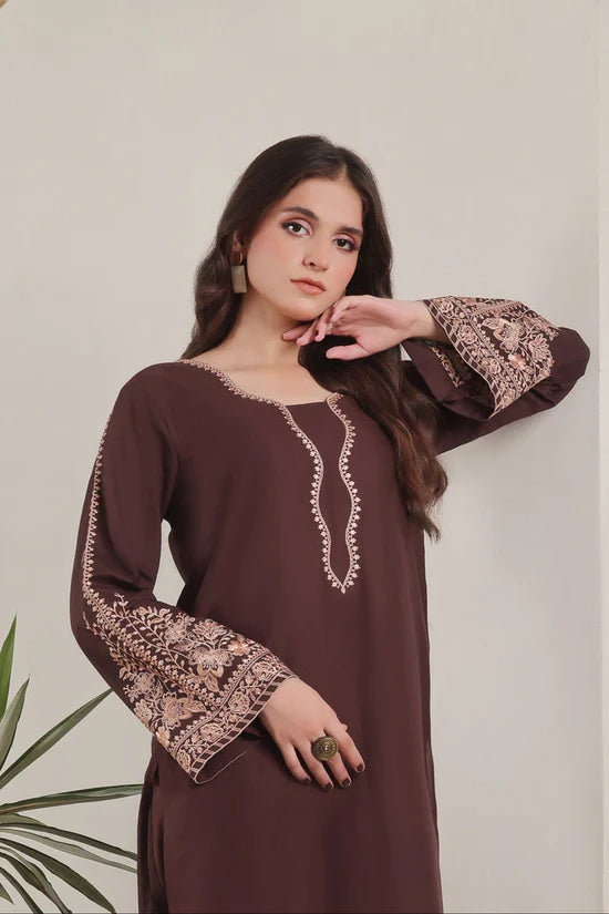 BATIK-3PC DHANAK EMBROIDERED SHIRT WITH COURTRAI PRINTED SHAWL AND TROUSER-GM-4277