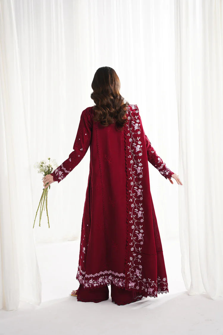 GARNET-3PC DHANAK EMBROIDERED SHIRT WITH DHANAK EMBROIDERED SHAWL & TROUSER-GM-4312