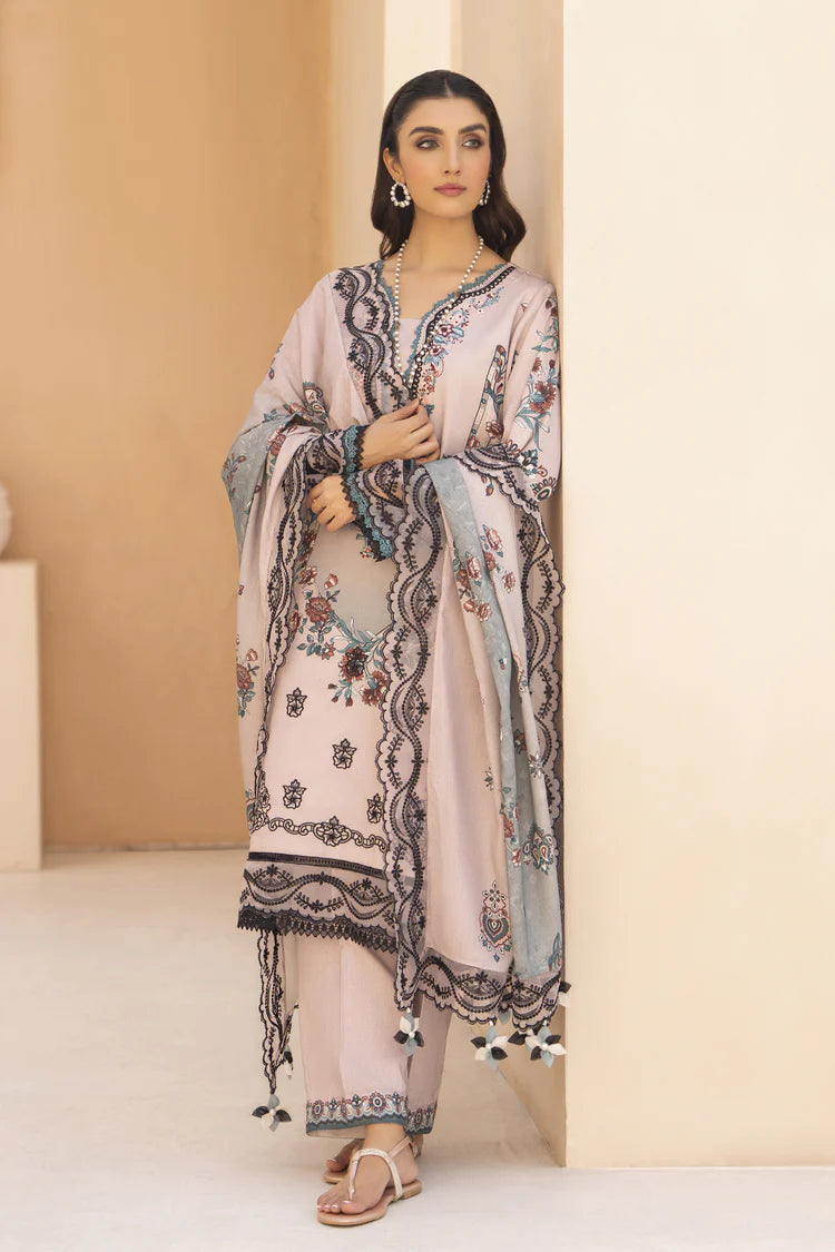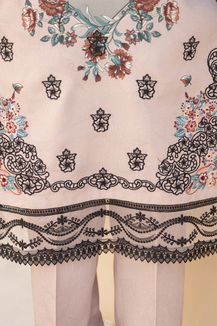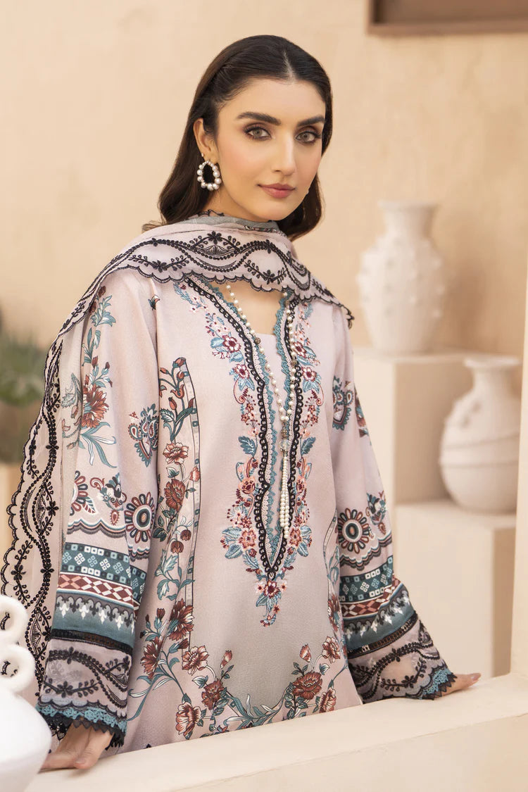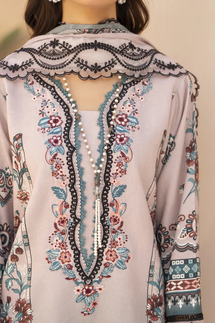 GM-3PC KARANDI PRINTED EMBROIDERED SHIRT WITH KARANDI PRINTED EMB SHAWL & PRINTED TROUSER-GM-
