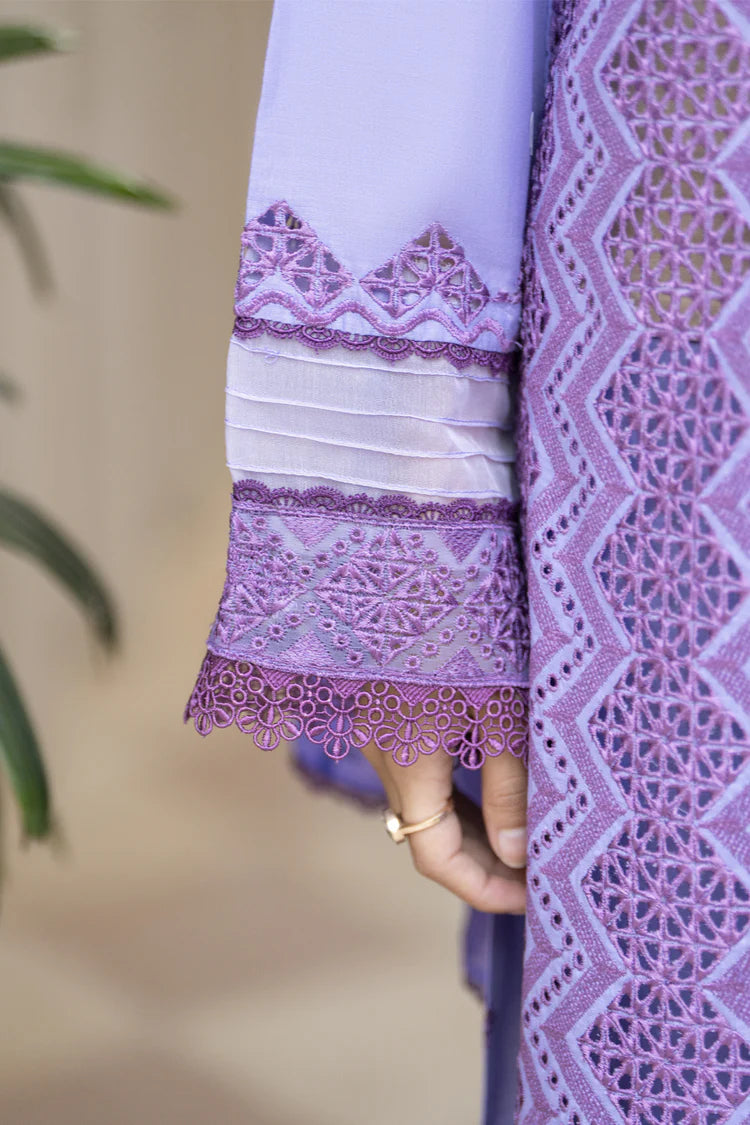 MIRAKHI-3PC LAWN LASERCUT EMBROIDERED SHIRT WITH MOARK PRINT DUPATTA-GM-VOL-1- PLUM