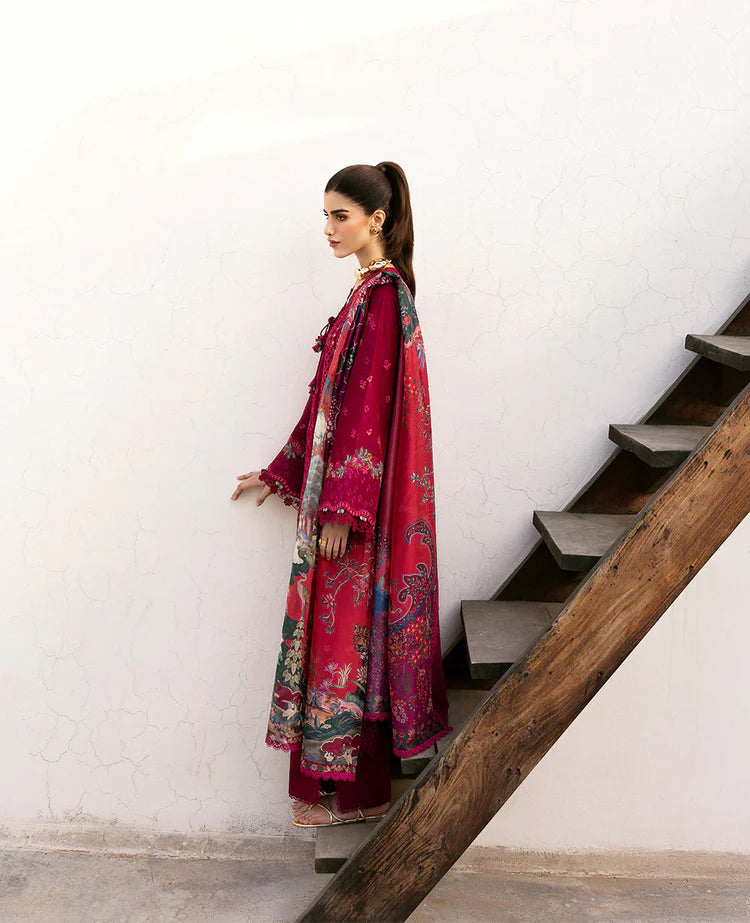 REPUBLIC-3PC DHANAK EMBROIDERED SHIRT WITH COURTRAI PRINTED SHAWL & DHANAK TOUSER-GM-4278