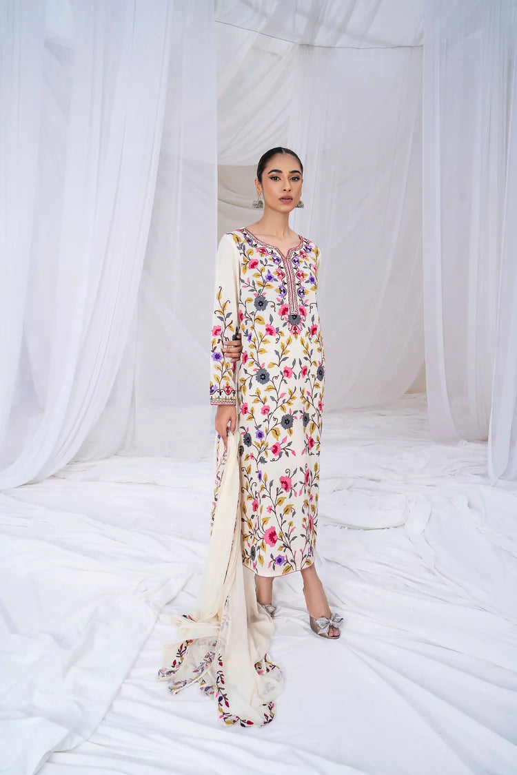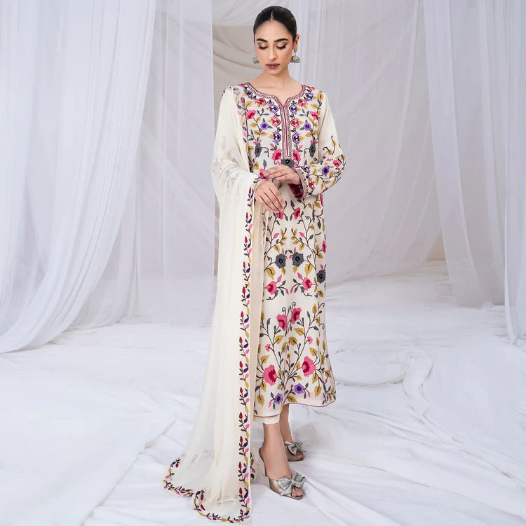 SAPPHIRE-3PC DHANAK EMBROIDERED SHIRT WITH BAMBER CHIFFON EMBROIDERED DUPATTA & TROUSER-GM-4299