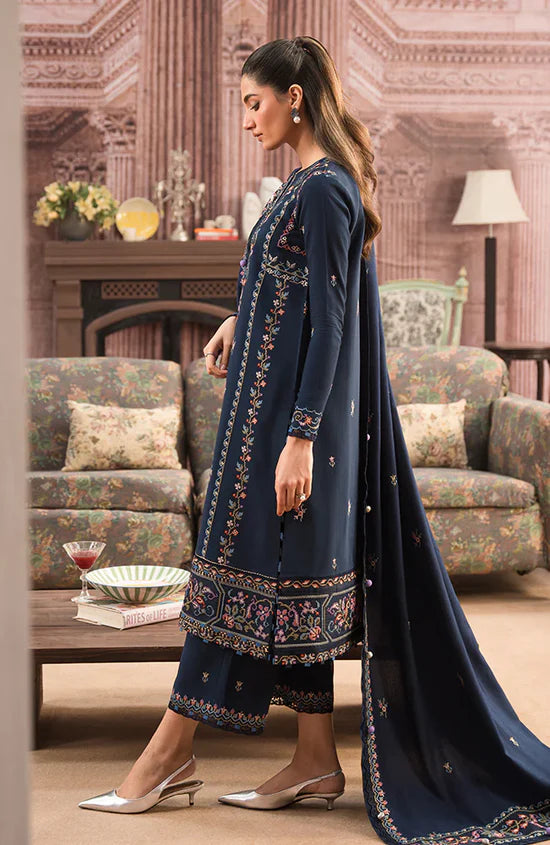 SERAN-3PC DHANAK EMBROIDERED SHIRT WITH DHANAK EMBROIDERD SHAWL & EMB TROUSER-GM-4243
