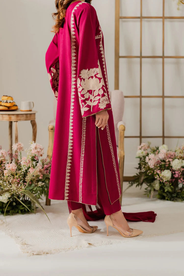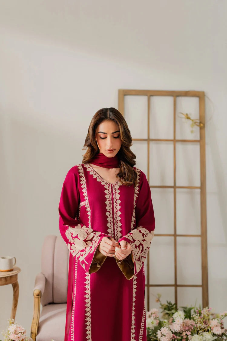 VINTAGE-3PC DHANAK EMBROIDERED SHIRT WITH DHANAK SHAWL AND TROUSER-GM-4290